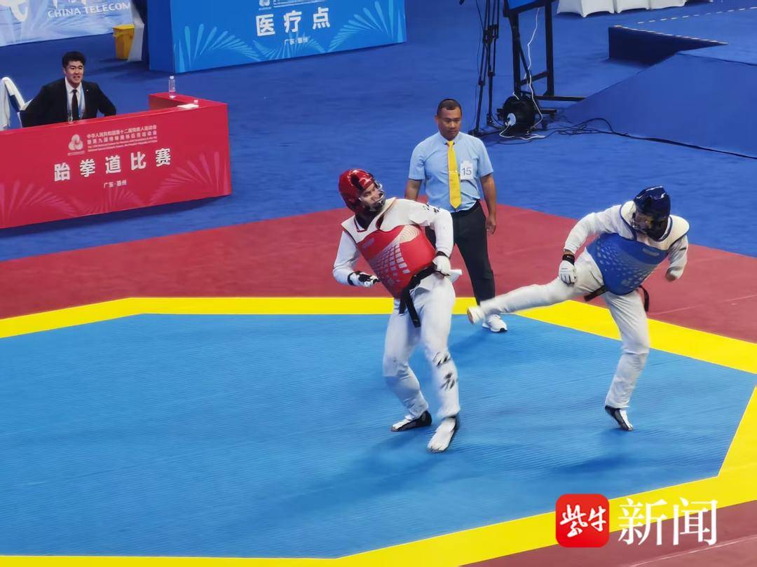 全国第十二届残疾人运动会暨第九届特殊奥林匹克运动会跆拳道比赛于9月10日在广东省惠州体育馆激情上演。全国23支代表队围绕31个小项展开激烈角逐。代表江苏出征的射阳县残疾人跆拳道队,共派出15名选手参加12个小项的比赛。最终获得1金3银2铜的优异成绩。