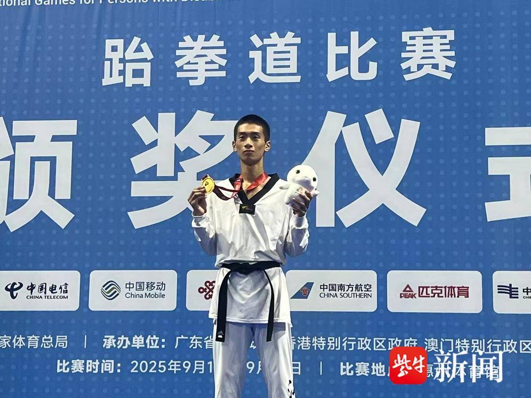 9月11日,全国第十二届残疾人运动会暨第九届特殊奥林匹克运动会跆拳道比赛场上传来喜讯,代表江苏出征比赛的射阳县少体校残疾人跆拳道队选手蔡海涛,斩获男子KP60 58kg级冠军。这一天牛壹佰,恰好是他的生日。